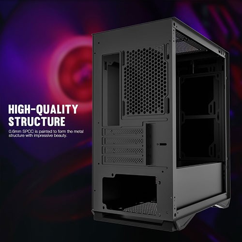 Model: DLM22 Black Type: Micro ATX / Mini-ITX Color: Black Case: MaterialSPCC Motherboard Compatibility: Micro-ATX / Mini-ITX Side Panel Window: Yes Dust Filters: Yes Power Supply: Not Included Power Supply Mounted Bottom Internal 3.5″ Drive Bays2 Internal 2.5″ Drive Bays2 Expansion Slots 4 Fan Options Front: 2 x 120mm fan Top: 2 x 120mm fan / 2 x 140mm fan, 200mm water cooling x 1 Rear: 1 x 120mm fan, 120mm Water Cooling x 1 Dimensions (H x W x D)16.20″ x 8.00″ x 14.20″