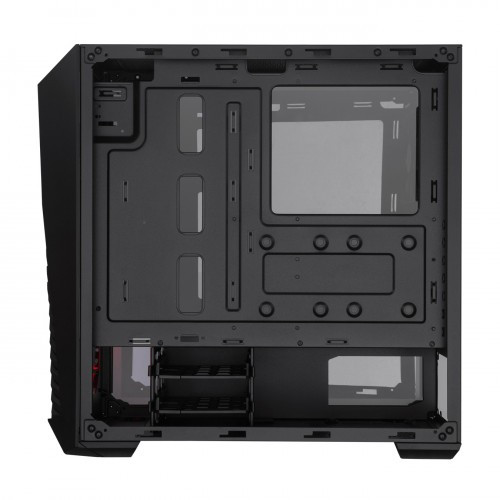 Gaming is in the core of the new MasterBox K501L. Donning an illuminated fan against the angled front panel ventilation speaks to its competitive character. Support of gaming hardware like long graphics cards, plenty of storage, and liquid cooling take priority in the K501L while still leaving room for future upgrades. Compatibility for high-performance hardware makes the K501L the essential start in building a monster rig, competitively priced to point the focus toward upgrades. The aggressive, angled front panel ventilation dons sharp design elements and striking lines, signifying the K501L’s competitive character. Paired with lighting on the power button, an illuminated fan glows through the angled ventilation; a testament to its gamer core. Showcase your build through the transparent side panel. The standard K501L comes with an Acrylic panel while the K501L RGB sports a Tempered Glass one. For enthusiast-grade cooling, two 360mm radiators are supported on the top and front panel to keep the most extreme systems cool. Support for up to seven 120mm fans and 360mm front and top radiator support ensure that performance is not compromised. Clearances of 410mm for the graphics card, 165mm for CPU coolers, and 180mm for PSUs offer room for powerful builds and future upgrades.