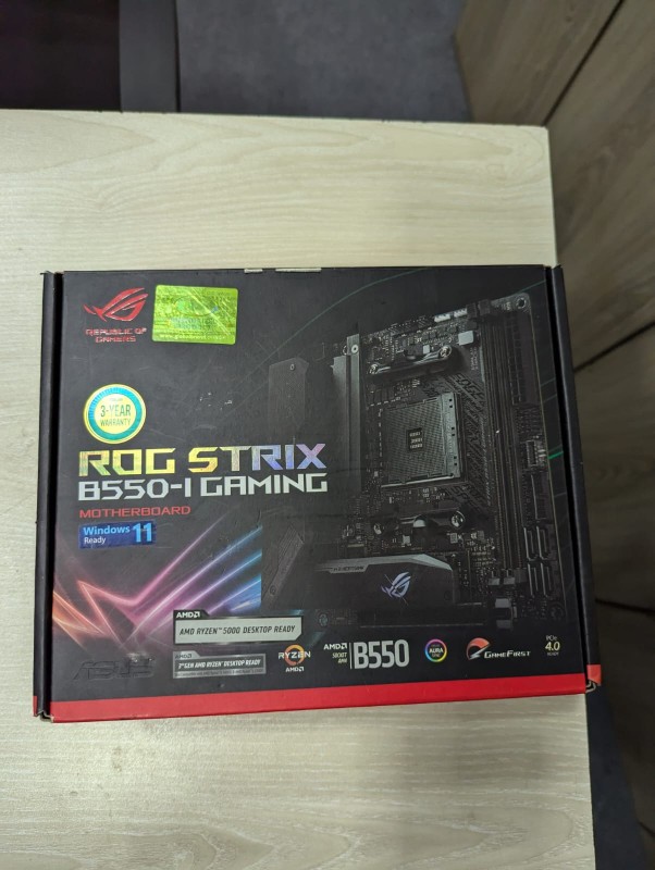 | Internal I/O Ports | 1 x USB 3.2 Gen2 connector support additional 1 USB ports(20-pin, Type-C) 1 x VRM_HS_FAN Header 1 x USB 3.2 Gen 1(up to 5Gbps) connector(s) support(s) additional 2 USB 3.2 Gen 1 port(s) 2 x M.2 Socket 3 with M Key design, type 2242/2260/2280 storage devices support (Supports both SATA & PCIE SSD) 1 x CPU Fan connector(s) 1 x Chassis Fan connector(s) 1 x AIO_PUMP connector 1 x Aura RGB Strip Header(s) 1 x Addressable Gen 2 header(s) 1 x USB 2.0 connector(s) support(s) additional 2 USB 2.0 port(s) 4 x SATA 6Gb/s connector(s) 1 x 24-pin EATX Power connector(s) 1 x 8-pin ATX 12V Power connector(s) 1 x Front panel audio connector(s) (AAFP) 1 x Thermal sensor connector(s) 1 x Clear CMOS jumper(s) 1 x System panel connector 1 x Speaker connector ASUS ROG STRIX B550-I GAMING MotherboardGive your space-saving gaming rig big potential with the Republic of Gamers ASUS ROG STRIX B550-I AM4 Mini-ITX Motherboard from ASUS. Designed for small form factor AMD gaming rigs, this mini-ITX board uses the B550 chipset and supports AM4 sockets. Supporting up to 64GB of dual-channel DDR4 RAM between two DIMMs, this board is compatible with frequencies up to 3200 MHz, or 5100 MHz when overclocked. ECC memory is supported, depending on the particular CPU installed on the board. A GPU can be installed via the PCIe 4.0 x16 slot, and storage options include four SATA III ports and two M.2 sockets, with one supporting PCIe 4.0 X4 drives and the other supporting PCIe 3.0 x4 drives. Both of these M.2 slots accept 2242-, 2260-, and 2280-sized drives. ASUS ROG STRIX B550-I GAMING Motherboard Features: